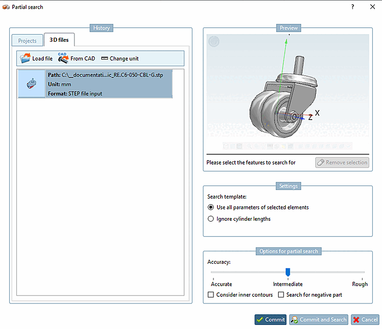 Vous pouvez charger n'importe quel fichier 3D comme pièce de recherche :