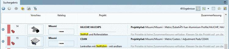 As parts equivalently usable do not always have the same name, a Full-text search using the search term "levelling foot" will not find parts named with "mounting foot", for example, which however could also be used. Furthermore untranslated terms in different languages cannot be found.