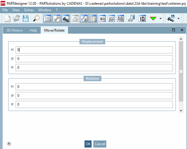L'utilisation de la rotation [Rotate] peut être liée à une manipulation du système de coordonnées (PARTproject -> Editer projet [Edit project] -> Onglet Général [General] -> Général [General] -> Axes de coordonnées [Coordinate axes] ). Voir à ce sujet l'exemple suivant.