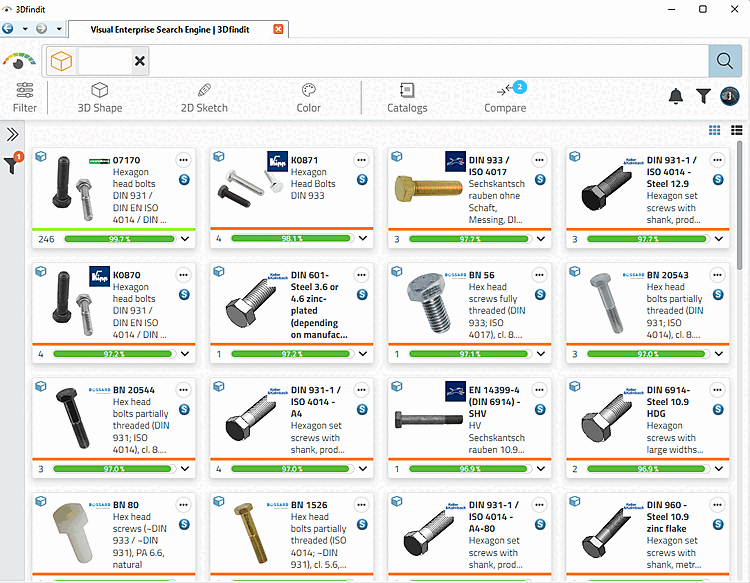Ouvrez par exemple la première/meilleure correspondance. Cette pièce serait par exemple une pièce de remplacement presque identique (99,7%).