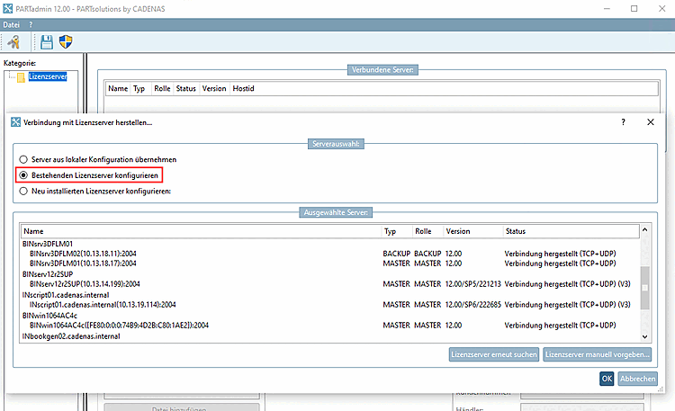 ... mettre en place un réseau de sauvegarde maître des serveurs de licences. Il est toujours recommandé d'utiliser un serveur de sauvegarde afin de pouvoir continuer à travailler en cas de panne du serveur maître. En mode de sauvegarde, cela est possible jusqu'à 12 heures. Il est encore plus sûr d'utiliser trois serveurs de licences, ce qui permet, tant que 2 sur 3 sont disponibles, de travailler sans limite.