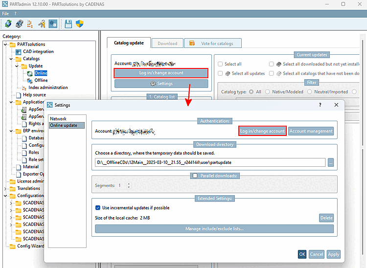 : en cliquant sur le bouton, PARTupdate (https://partupdate.cadenas.de/login/index) s'ouvre [même login ici].