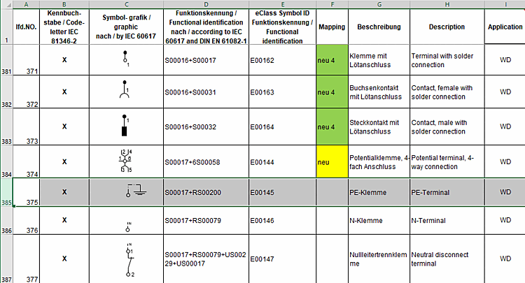 Un tableau des symboles fonctionnels CAx_ est disponible sur le site http://wiki.eclass.eu/wiki/CAx_Funktionssymbole(classé en interne par CADENAS dans le tableau Excel eCl@ss CAx_Funktionssymbole 24.02.2018.xlsx).