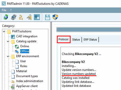 En cas d'utilisation de PARTsolutions avec intégration ERP, le numéro de version dans la LinkDB est également adapté lors de la mise à jour du catalogue.