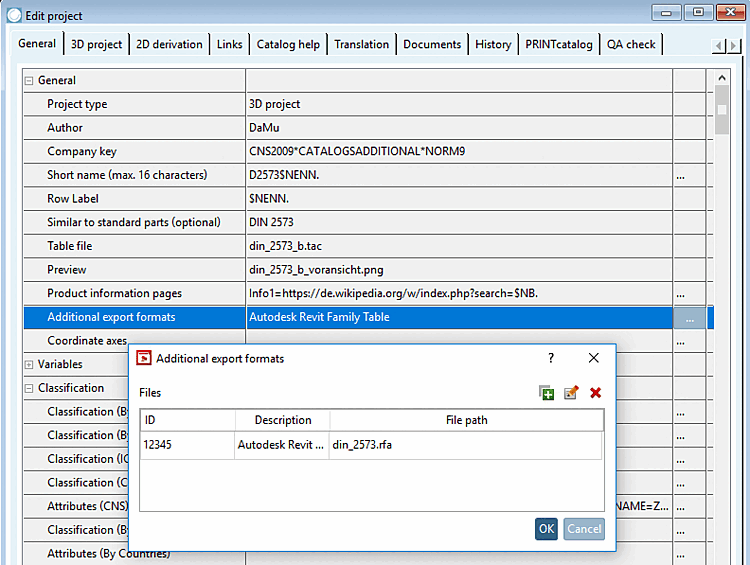 Sous Formats d'exportation supplémentaires [Additional export formats], des fichiers supplémentaires (formats d'exportation) peuvent être mis à disposition pour l'exportation (par ex. Revit [RFA = Revit Family Tables], DXF avec des couches d'outils spéciales).[31]