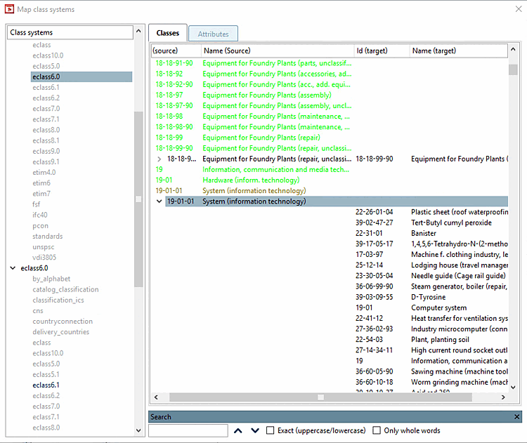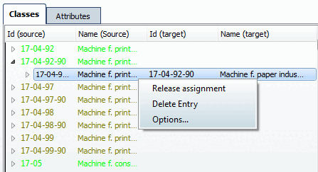Si vous souhaitez modifier un mapping existant, double-cliquez sur la classe "noire" souhaitée. -> Le mapping est chargé dans la boîte de dialogue.