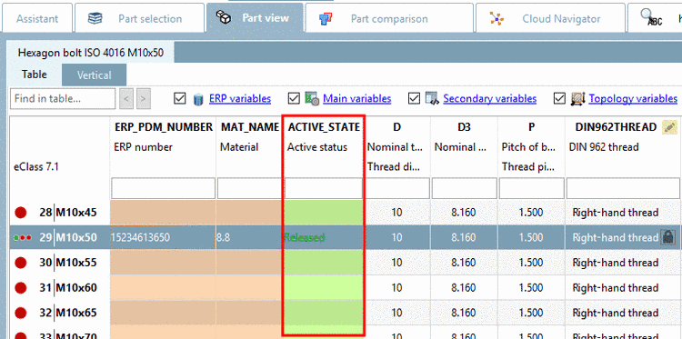[107] Hiding columns by administration is also possible, of course. See Section 4.7.3.1.6, “ Columns to be displayed - plinkgroups.cfg -> Block [Role_name] -> Key "VARSUSED / VARSHIDDEN" ” in PARTsolutions - Administration Manual.