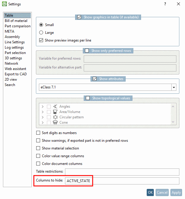 Specific settings in PARTsolutions are saved on the local desktop computer and can be changed by the user himself; e.g. a list of suppressed columns.
