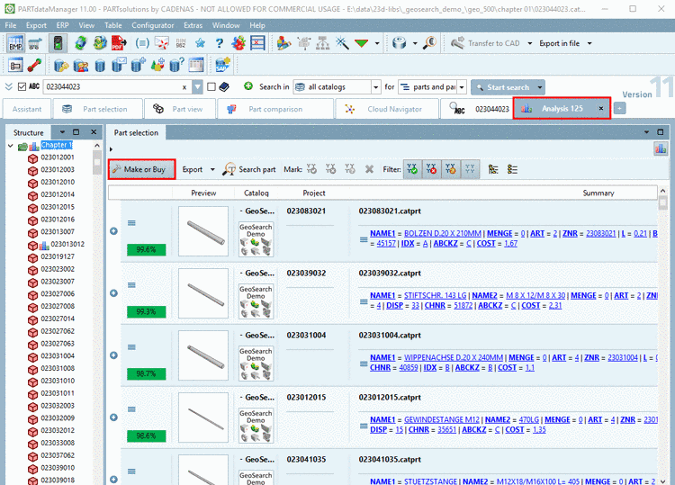 In the following you can find a description on how to create a Make or Buy analysis.