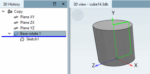 -> L'arborescence des répertoires dans l' historique 3D [3D History] est complétée par le point Base rotate 1.