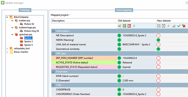Dans la nouvelle version, la ligne "Piston 50" manque et la ligne "Piston 100" a été ajoutée (elle ne peut donc pas encore avoir reçu un ERP_PDM_NUMBER).