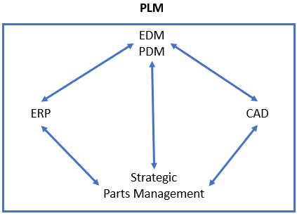 PLM = Gestion stratégique des pièces + CAO + PDM + ERP