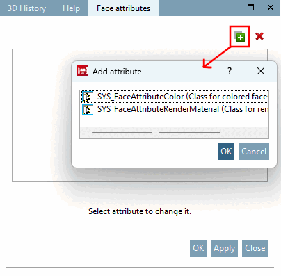 -> La boîte de dialogue Attributs de surface [Face attributes] s'ouvre. (Ici, dans l'exemple, l'attribut "Couleur" avait été sélectionné).