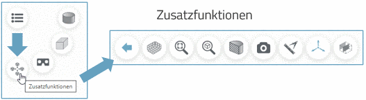 • When clicking on a button top left, further buttons (functions) are displayed.
