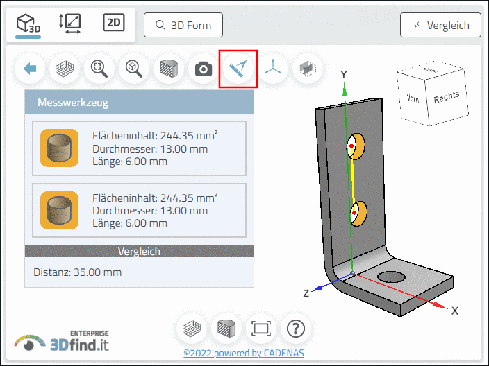 Rotate the view by clicking on an edge, corner or face to fetch it into the foreground. Repeated clicking on a face rotates the part around the perpendicular on the face.