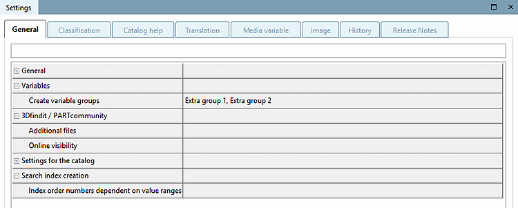 La création de groupes de variables présente l'avantage de pouvoir les sélectionner séparément. Lors de la détermination des variables dans 3Dfindit / PARTdataManager ou PARTcommunity, l'utilisateur a une bien meilleure vue d'ensemble si le tableau est plus petit et si moins de variables sont affichées en même temps.