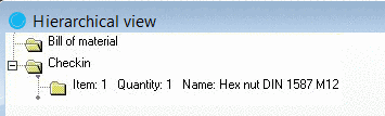 Mark the part with the mouse and drag it into the Bill of material folder. As soon as a frame (blue) shows up around the Bill of material folder, let go of the mouse button. |