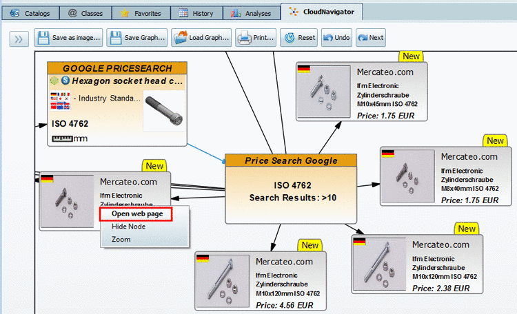 In this example the Cloud Navigator result shows all found standard parts (signalized by the respective icon