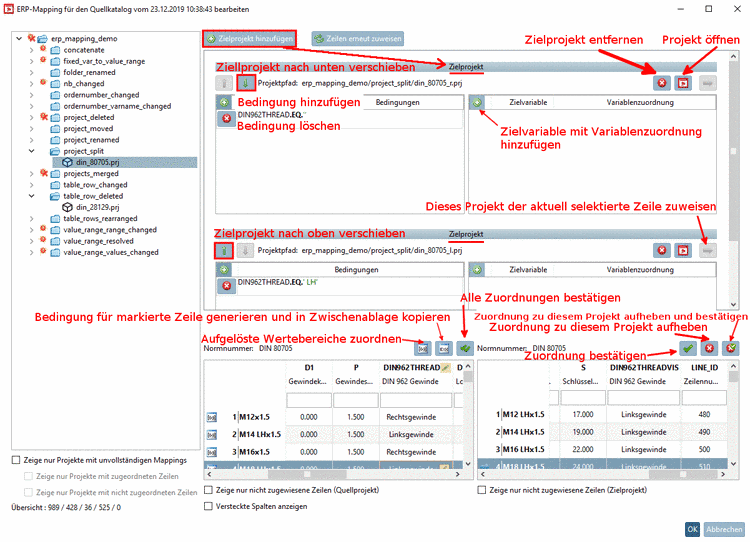User interface of the dialog box Edit ERP mapping