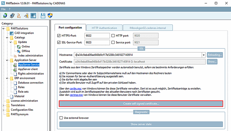 Ouvrir la catégorie Service AppServer -> onglet page Configuration du port [Port configuration].
