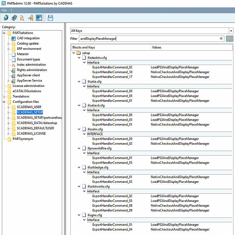 Dans ifXXX.cfg (XXX est égal au nom CAD), échanger toutes les clés LoadXYZAndDisplayPlaceManager par ChargeXYZAndPlace.