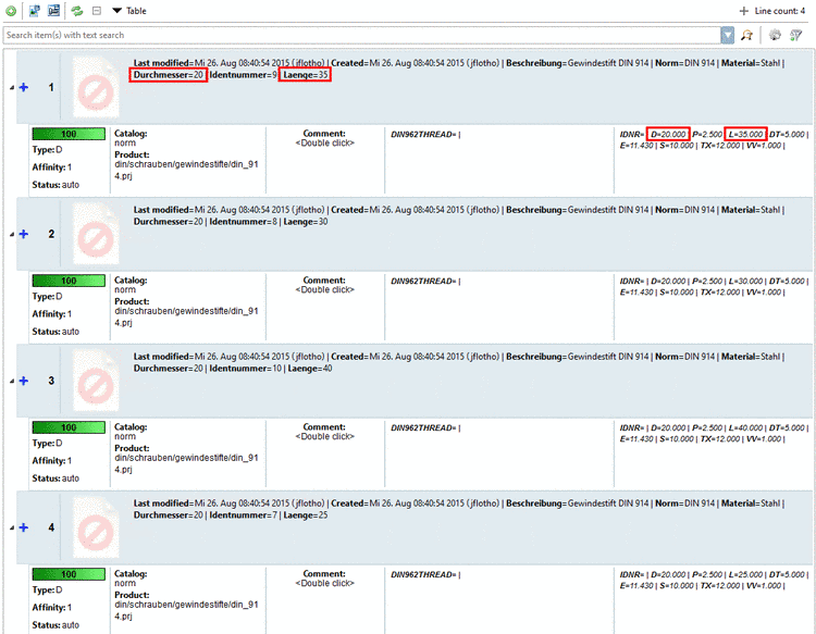 The example in hand uses 4 characteristics of a DIN 914 (see adjoining CSV file) and shall show the complete procedure based on the template Attribute mapping.[a] |