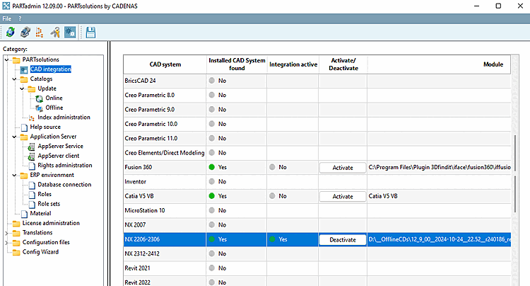 L'activation et la désactivation (via PARTadmin) concernent toutes les versions compatibles (celles qui sont regroupées sur une seule ligne) en une seule fois.