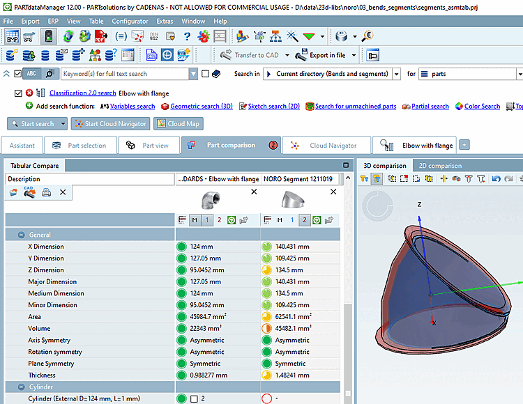 La pièce recherchée et la pièce trouvée sont chargées dans la comparaison des composants [Part comparison].