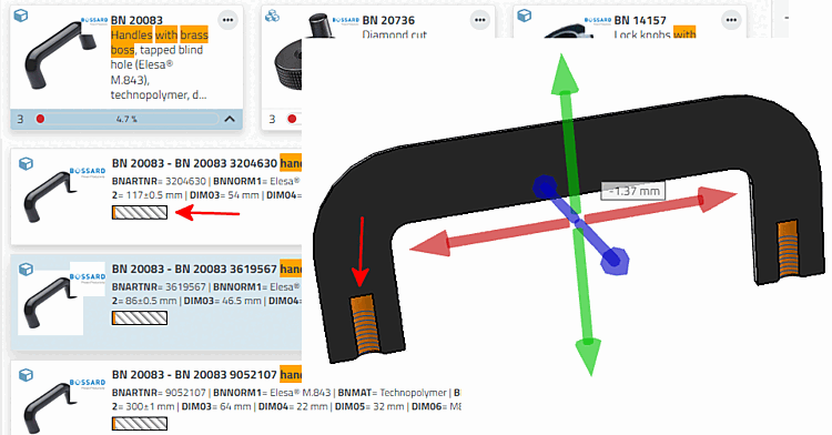 La barre de couleur indique le degré de concordance entre la couleur de recherche et la couleur réelle de la pièce. Même si la couleur n'est pas exactement la bonne, le résultat est obtenu ; seul le pourcentage de similitude est plus faible.