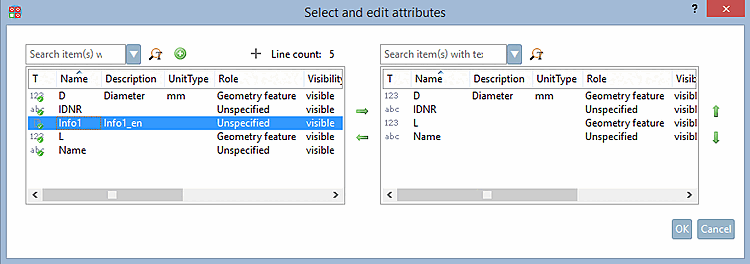 Sélectionnez les attributs souhaités et déplacez-les vers la droite à l'aide de la flèche verte.