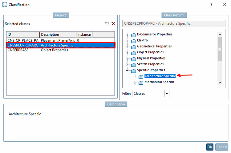 Dans PARTproject, sous Outils [Extras] Menu -> Systèmes de classes : Editer.. [Class systems: edit...]. les classes spécifiques à l'architecture correspondantes sont alors définies.