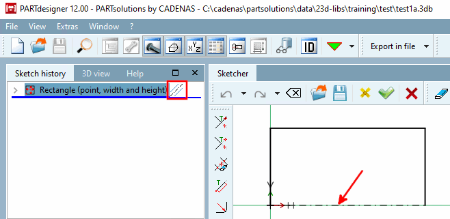 Certaines actions sont directement marquées par une icône dans l' historique de l'esquisse [Sketch history]: