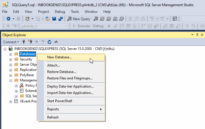 6. Ouvrez maintenant une autre requête vide et Créez l’utilisateur « erpuser ». Vous pouvez utiliser le script plinkdb_reuse.sql (moins de ..\tools\databases\MSSQL ) utiliser.