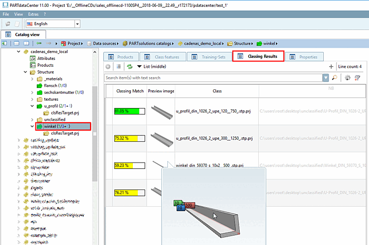 Le classement semi-automatique fonctionne aussi bien sur les catalogues PARTwarehouse dans l' espace de travail [Workspace] que directement sur les catalogues PARTsolutions sous Sources de données [Data sources]. La description suivante se réfère au classement sous les sources de données [Data sources].