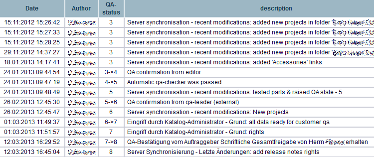 Le niveau de statut AQ de chaque répertoire ou projet permet par exemple de voir qui était responsable à quel moment. |