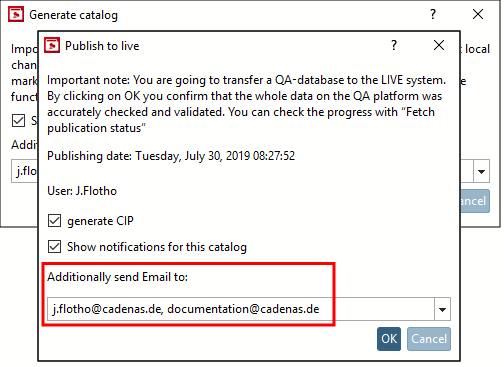Si vous avez saisi une adresse e-mail dans la boîte de dialogue Générer le catalogue [Generate catalog] ou Publier le live stand.. [Publish Live state...]. (voir Section 6.10.5, « Générer un stand QA... | Publier un stand en direct... »), vous recevrez un e-mail avec un fichier journal en pièce jointe à la fin de la génération ou de la publication. Si des erreurs sont survenues, vous obtiendrez ici des informations détaillées.