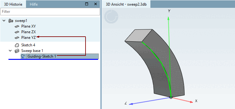 -> Dans l' historique 3D [3D History], le sketch est désormais affiché en tant que sketch de guidage.