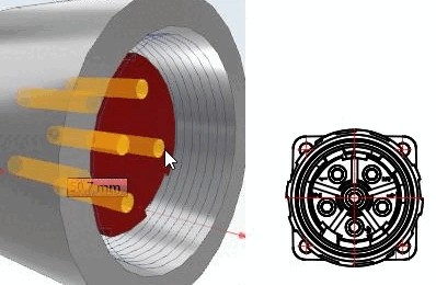 Sur la base d'un trou, il est possible de rechercher une vis ou un foret approprié. Dans ce cas, activez en plus l'option Ignorer la longueur du cylindre [Ignore cylinder length].