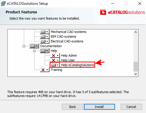 Dans le setup d'eCATALOGsolutions, l'aide pour eCATALOGsolutions est installée par défaut.