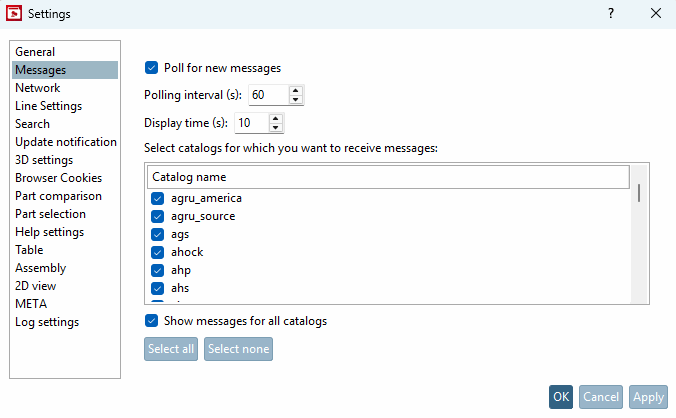 Le menu Messages est une fonction purement PARTproject et se rapporte aux notifications après la publication SVN des catalogues sur les portails QA / LIVE.