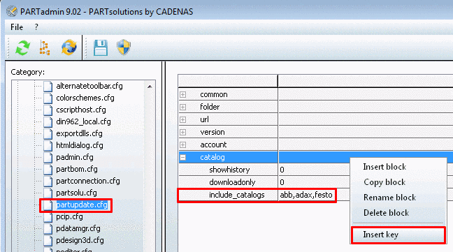 Under PARTadmin -> Category -> Configuration files -> $CADENAS_DEFAULTUSER -> partupdate.cfg -> block catalog set the include_catalogs key.
