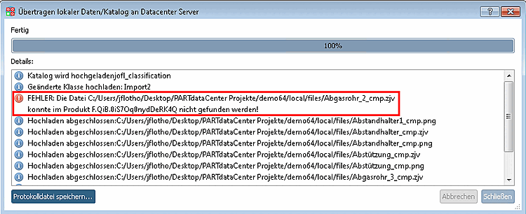 Des processus en arrière-plan peuvent être exécutés sur le serveur. Pour les grands catalogues, le processus d'exportation peut prendre un peu de temps. Une fois l'exportation terminée, on voit le résultat dans PARTdataManager.