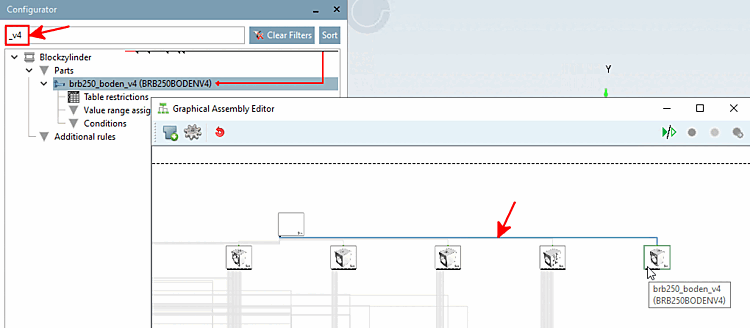 Utilisez la fonction de recherche dans le configurateur [Configurator] pour trouver rapidement la pièce ordonnée dans un grand assemblage.