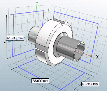 Si vous activez l'option de menu Grille de mesure [Measuring grid] dans le menu contextuel de la fenêtre 3D, les dimensions maximalessont affichées.