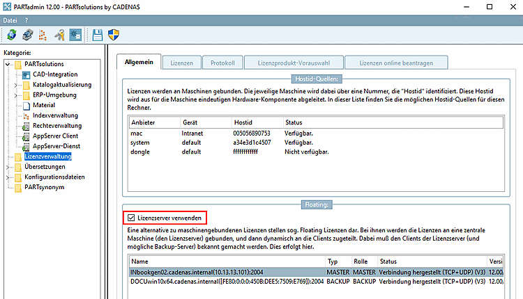 ... mettre en place un réseau de sauvegarde maître des serveurs de licences. Il est toujours recommandé d'utiliser un serveur de sauvegarde afin de pouvoir continuer à travailler en cas de panne du serveur maître. En mode de sauvegarde, cela est possible jusqu'à 12 heures. Il est encore plus sûr d'utiliser trois serveurs de licences, ce qui permet, tant que 2 sur 3 sont disponibles, de travailler sans limite.