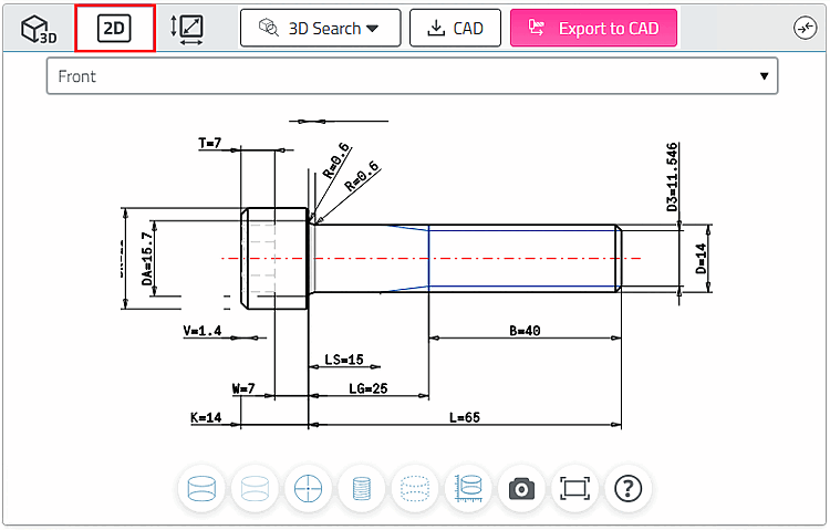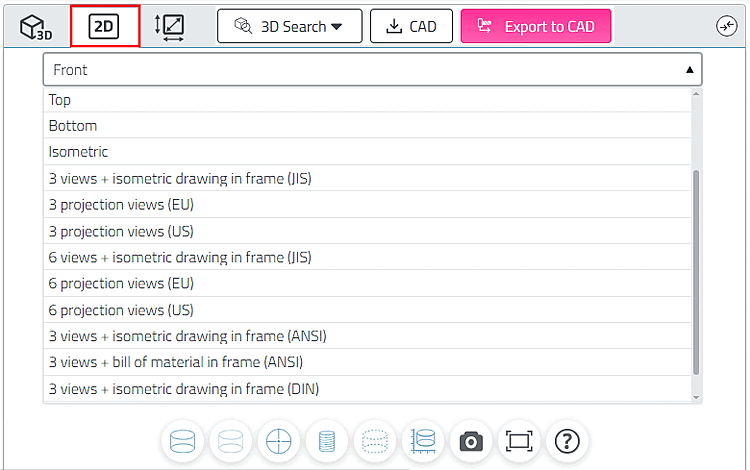 Pour pouvoir insérer des composants/ensembles 3D de PARTsolutions dans un système de CAO 2D, vous créez une dérivation 2D [2D derivation] de l'objet 3D.