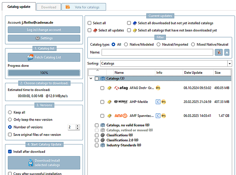 Pour pouvoir télécharger des catalogues, vous devez disposer d'un compte valide chez CADENAS.