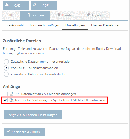 activate the option Attach technical drawings / symbols to the