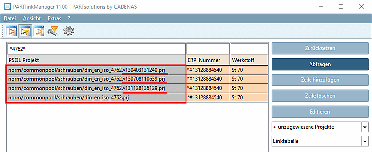 Les versions dans le PARTlinkManager sont affichées dans la colonne PSOL Projet.[13]
