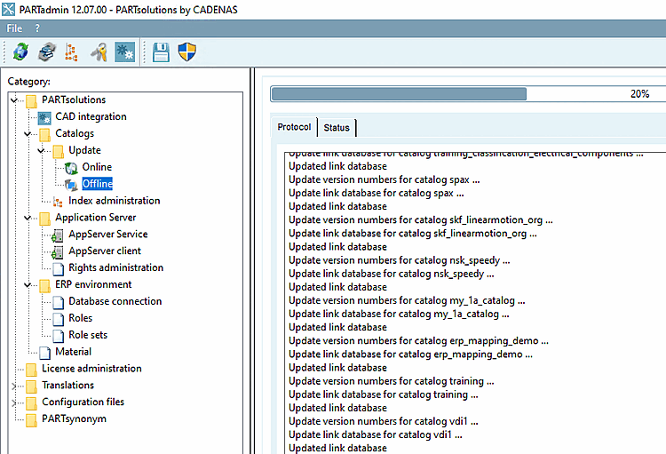 -> PARTadmin s'ouvre. Les numéros de version et la base de données des liens sont mis à jour. Selon la taille du catalogue, le processus peut prendre quelques minutes.